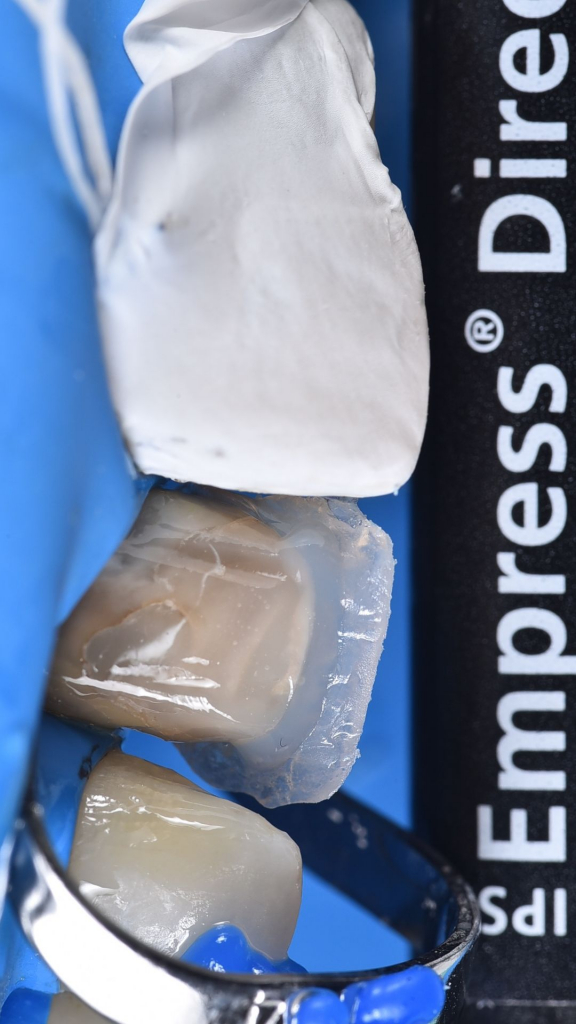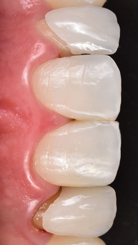 El efecto “umbrella”, descrito por Pascal Magne, se refiere al fenómeno óptico en el que las zonas más delgadas de una restauración translúcida aparecen más oscuras debido a la absorción lateral de la luz y a la falta de suficiente reflexión interna. Este efecto se observa sobre todo en restauraciones con espesores reducidos (por debajo de 0,7 mm) y explica por qué, incluso con materiales estéticamente adecuados, la periferia incisal o cervical puede parecer más gris.