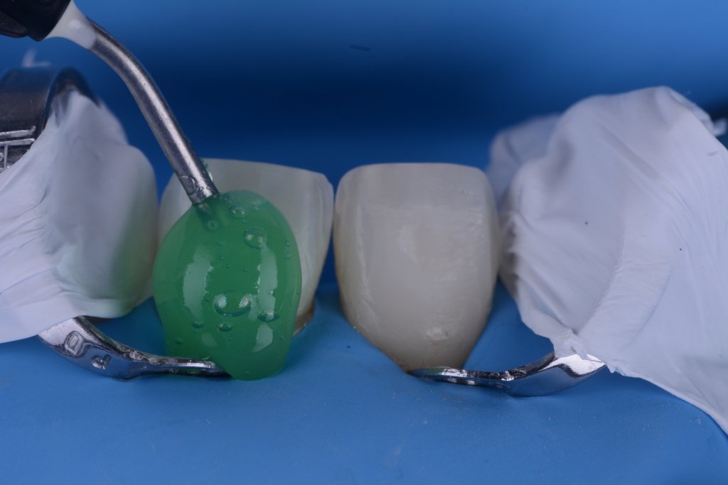 Voy siempre de 2 en 2, claramente cemento antes las Coronas, que me ayudaran a «clampar» y luego las carillas. Pero normalmente empiezo con los laterales que están en el medio y suelen robar el espacio a los otros