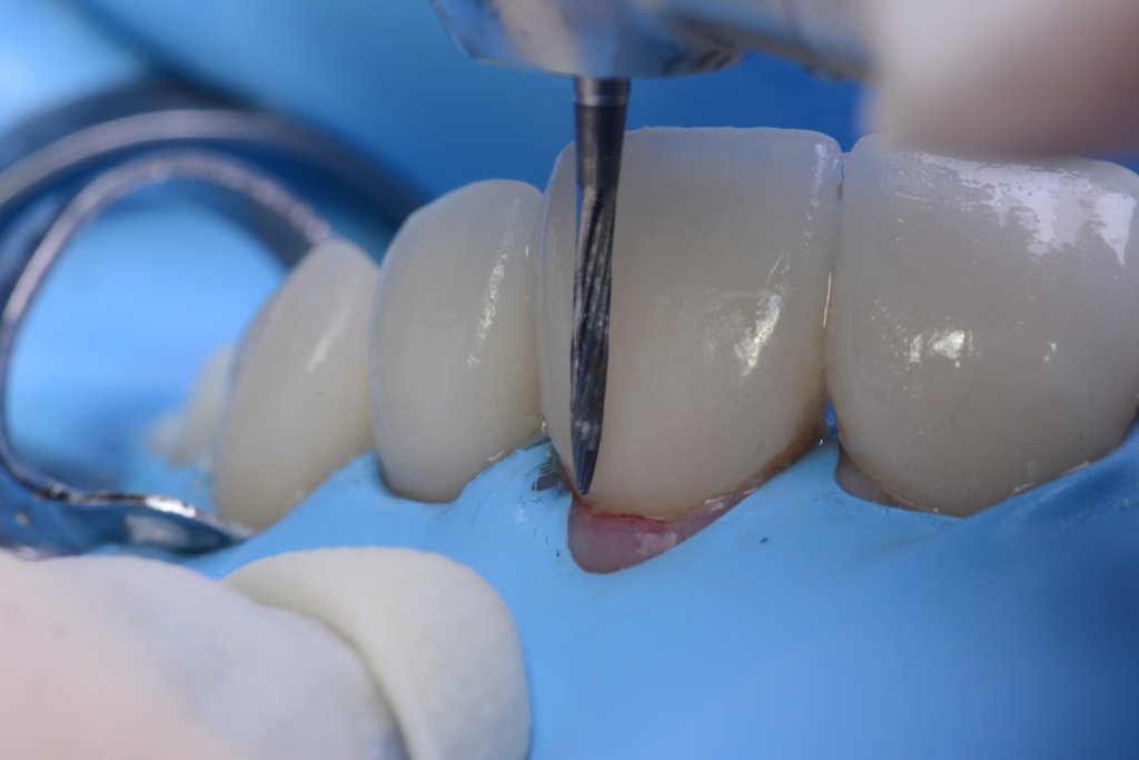 La Re- preparación de las antiguas carillas me deja sin esmalte (un clásico vamos), así que por cuanto no me guste estoy obligado a preparar a coronas. Todo en VERTICAL por supuesto, no hablamos de BOPT en este caso porque me salté la clásica fase de los provisionales.