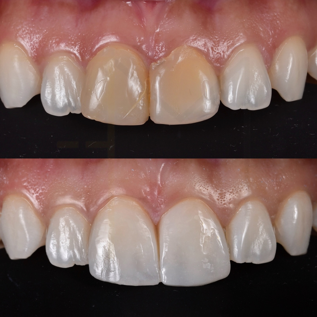 CONTRA: Claramente es más agresivo y si no tienes un control de los espesores (y sobre todo del esmalte) aumenta el riesgo de empeorar el aspecto de la restauración.
