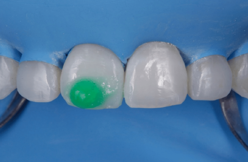 Aislamiento: La preparación y el aislamiento del área del diente que se va a tratar pueden llevar aproximadamente 5-10 minutos. Es esencial mantener el área seca para asegurar una buena adhesión de la resina. Como sabéis prefiero siempre utilizar el NICTONE para el Aislamiento.