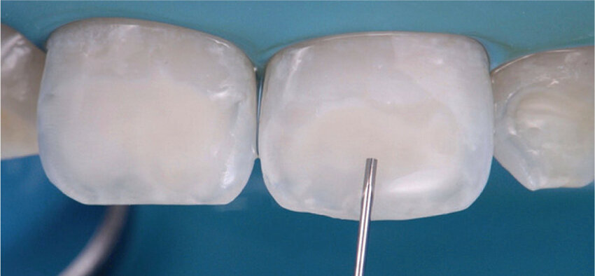 Aplicación del gel de ácido: El gel de ácido clorhídrico (HCl) al 15% se deja en el diente durante unos minutos, generalmente entre 2-5 minutos. Este paso es crucial para abrir los poros del esmalte y permitir que la resina infiltrante se infiltre adecuadamente en las lesiones.