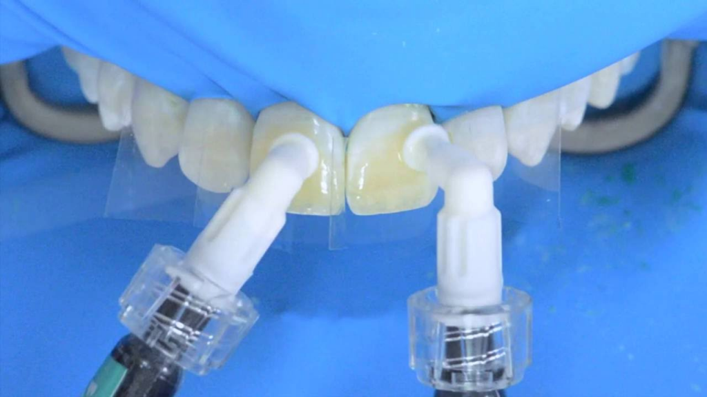 Fotopolimerización: Después de aplicar la resina, se utiliza una luz LED especial para fotopolimerizar o endurecer la resina. Este paso suele tomar alrededor de 20-60 segundos por cada diente tratado, dependiendo del tipo de luz y el grosor de la capa de resina.